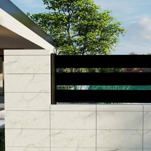 Powierzchnia Naturyt nawiązuje wyglądem do naturalnego kamienia, co nadaje ogrodzeniu bardziej dekoracyjny charakter. Elementy idealnie komponują się z nowoczesnymi projektami architektonicznymi oraz aranżacją przestrzeni wokół domu.