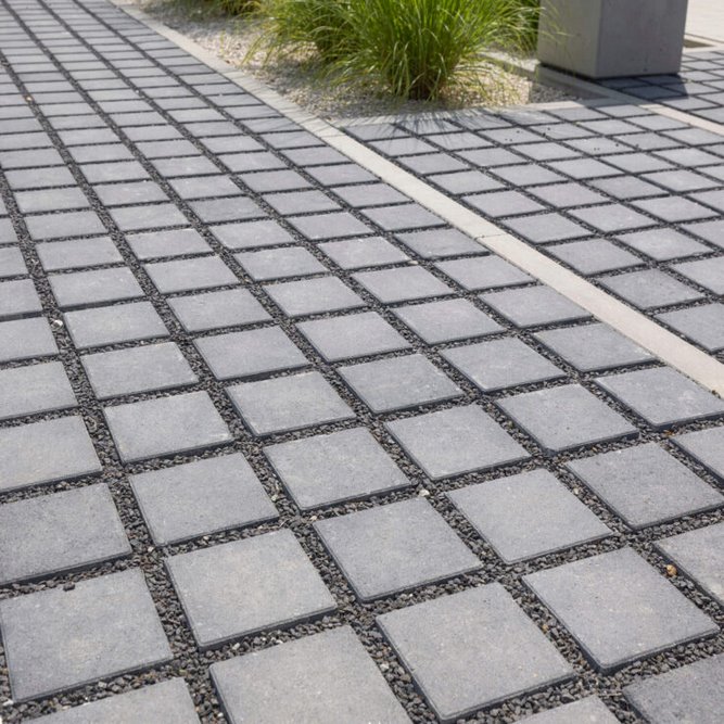 UNI ECO to ekologiczna wersja klasycznej kostki brukowej o charakterystycznym, zazębiającym się formacie. Dzięki zastosowaniu specjalnych odstępników pomiędzy elementami możliwe jest uzyskanie powierzchni biologicznie czynnej, przez którą woda opadowa może swobodnie przenikać do podłoża.