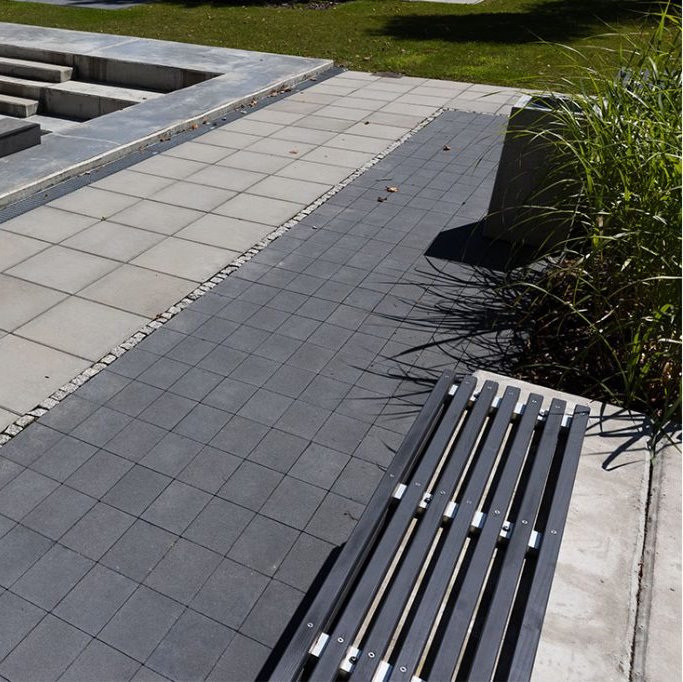 Kostka brukowa Urbanit składa się z pojedynczych prostokątnych elementów, które można układać w prostych układach rzędowych lub łączyć z innymi kostkami w różnorodne kompozycje. Prosta geometria elementów pozwala uporządkować przestrzeń i przejrzyście wyznaczyć ciągi komunikacyjne.