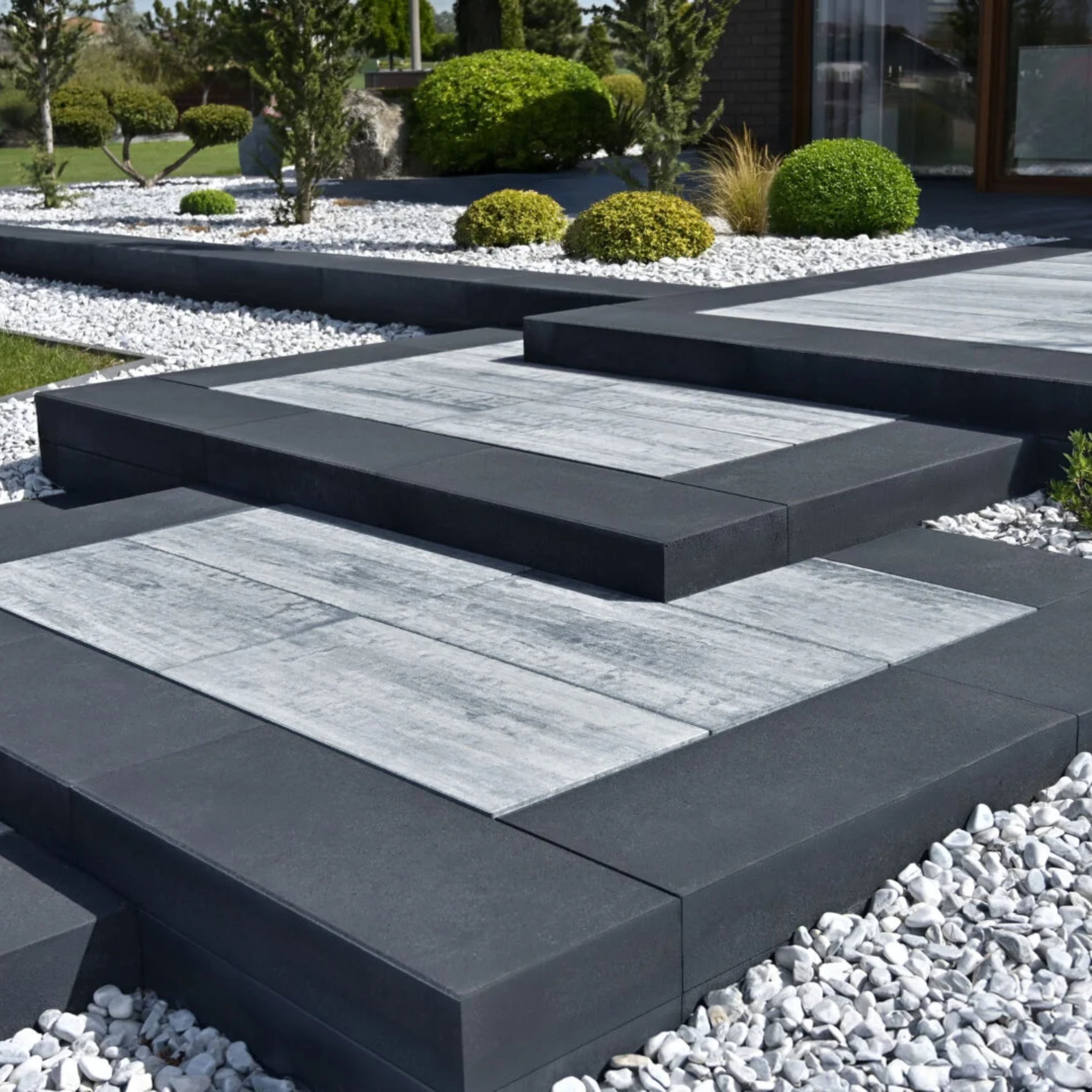 Stopnie schodowe to produkty betonowe dedykowane przede wszystkim do wykonywania schodów zewnętrznych oraz innego różnicowania wysokości nawierzchni. Pojedynczy blok o wymiarach 100 x 40 cm x 15 cm odpowiada wielkością typowym rozmiarom schodów zewnętrznych. Dzięki stopniom blokowym można w prosty sposób zbudować trwałe, wygodne i atrakcyjne wizualnie schody na terenie posesji.Stopnie świetnie nadają się do stworzenia schodów np. wejściowych do domu, prowadzących na taras lub do umieszczenia na ścieżce ogrodowej. Schody stworzone ze stopni blokowych świetnie pasują do nowoczesnej architektury i dają duże możliwości aranżacyjne. Są przy tym bardzo wygodne, ponieważ mają 40 cm szerokości.