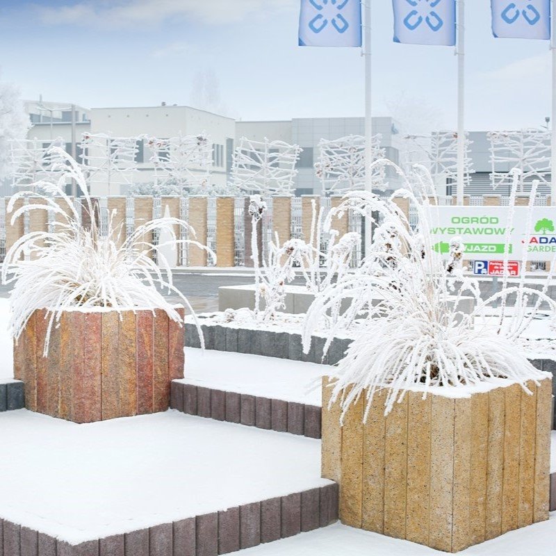 Betonowa konstrukcja zapewnia trwałość, odporność na warunki atmosferyczne oraz stabilność wykonanych elementów architektury ogrodowej.
