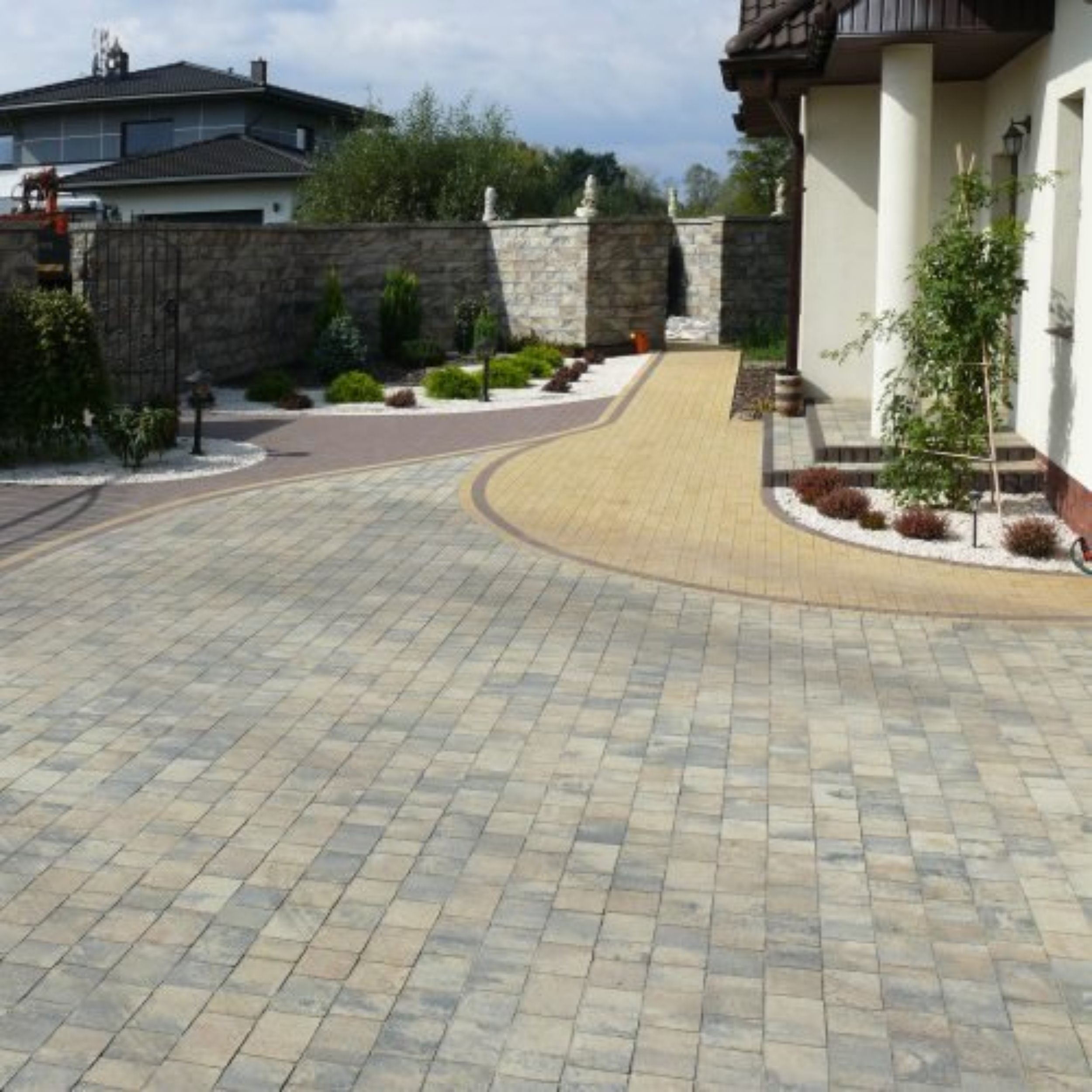 To proste rozwiązanie na tradycyjne aranżacje. Zestaw pasujących do siebie kostek, tworzy nieskomplikowany wzór. Z powodzeniem sprawdza się jako nawierzchnia podjazdów nadając im stylowy i niepowtarzalny charakter.