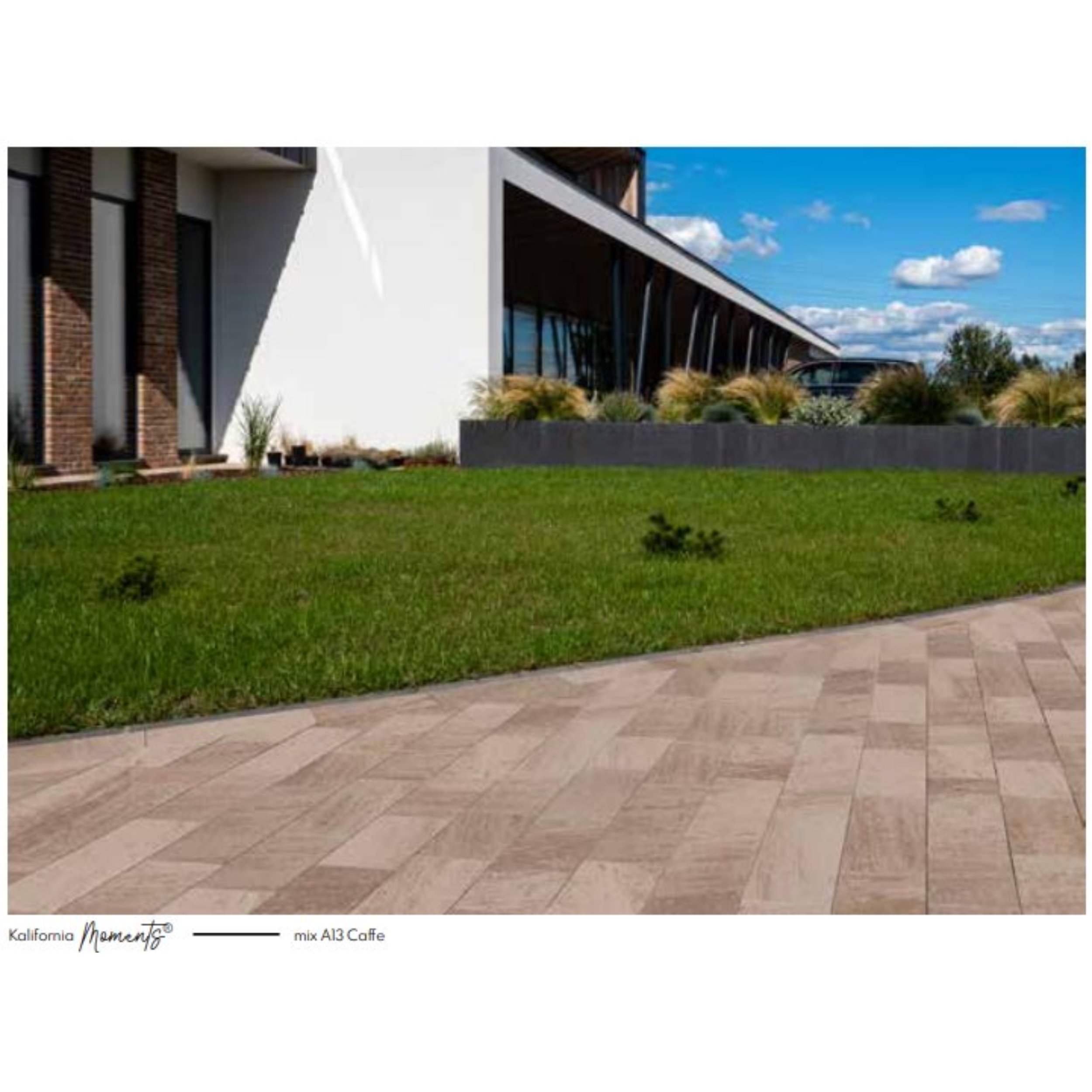 Kalifornia Moments to system kostki o geometrycznych formatach umożliwiających tworzenie uporządkowanych i harmonijnych kompozycji. Technologia wybarwienia Moments nadaje nawierzchni wielotonowy, naturalny efekt kolorystyczny, który podkreśla nowoczesny charakter przestrzeni.