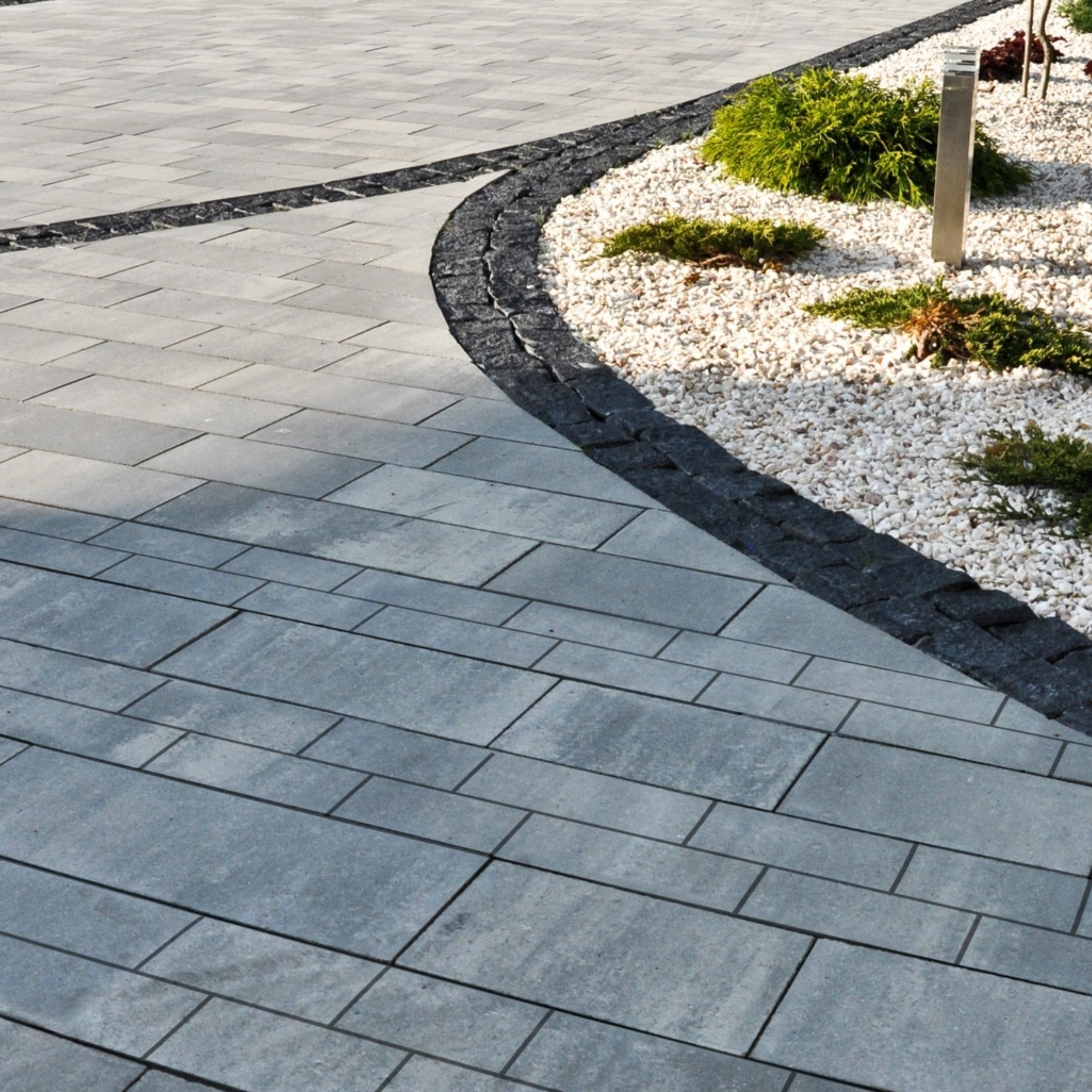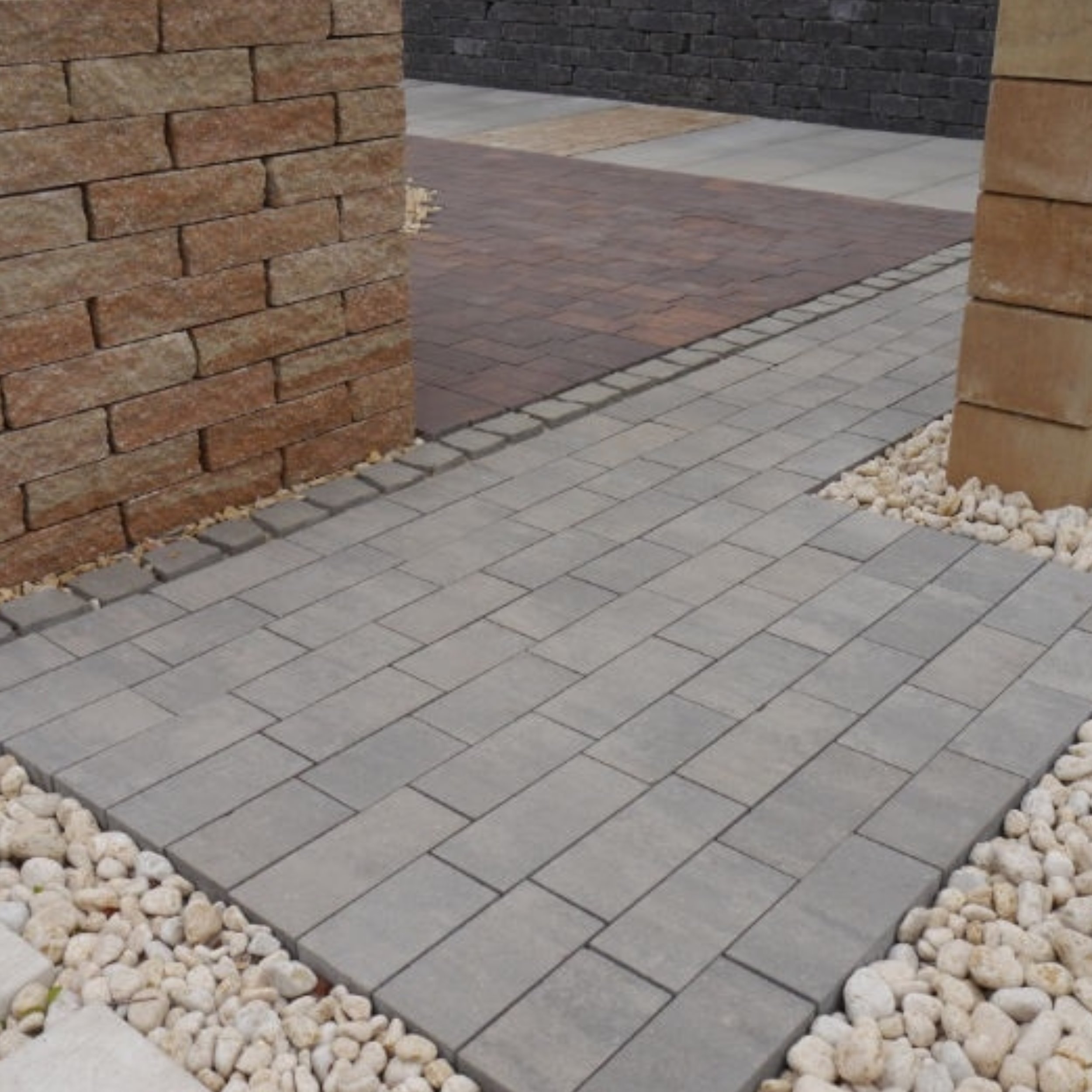 Mini Trio składa się z kostek w trzech wymiarach. Pozwala to na swobodne tworzenie nawierzchni oraz stosowanie różnych układów. Do dyspozycji mamy trzy kolory, dzięki czemu łatwo dopasujemy aranżację nawierzchni do elewacji lub innych elementów otoczenia.